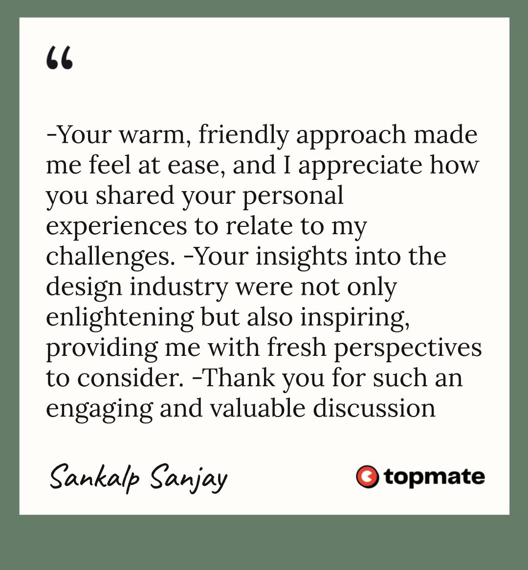 Thats why I teach, coach, and support the next Gen of designers via Topmate. It keeps my learning journey vibrant and ongoing.